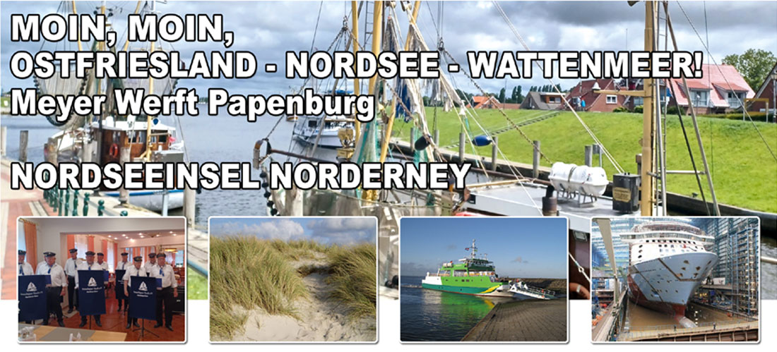 Abfahrt in den frühen Morgenstunden. Vorbei an Bielefeld gelangen wir in das Emsland nach Papenburg. Hier werden wir die mittlerweile weltbekannte Meyer Werft besuchen. Sie zählt mit Ihrem überdachten Baudock zur größten weltweit. Während einer ca. 2-Std. Führung erleben wir die Entstehung eines Schiffes/Kreuzfahrtschiffes hautnah mit. Man kommt aus dem Staunen nicht mehr heraus. Zuvor halten wir aber in der Hafenstadt an der Ems. Einen wunderschönen Hafen mit neuangelegten Kanälen und Promenaden erwarteten Sie. Aufenthalt. Nachmittags wie oben beschrieben die Meyer Werft. Am späten Abend beziehen wir unsere Zimmer in einem typischen Ostfriesischen Dorf in Heede. Heede ist ca. 30 km von Leer entfernt. Auch der Hotelgasthof zur Linde ist typisch (Ostfriesisch). Die Zimmer sind einfach aber typisch rundum gemütlich eingerichtet. Herrn Frischat gefällt es. Das Essen ist Super. Rest des Tages zur freien Verfügung. Abendessen.